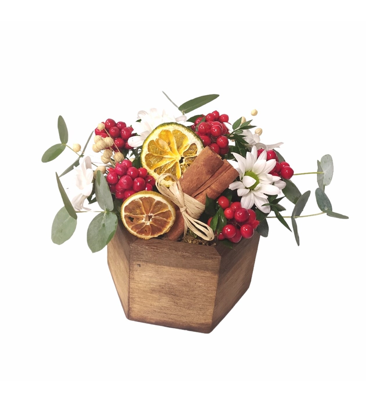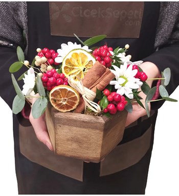 Kış mevsiminin gelmesiyle sevdiklerinizin içini ısıtacak sıcak rengi, tasarımı, şıklığı ile kokina çiçek aranjmanlarımız tasarlanmaya devam ediyor. Kokina çiçeği hakkında bir çok efsane var. Kimine göre şans getirdiğine, kimine göre mutluluk getirdiğine inanılıyor. Bizler ise sizlere sağlık ve huzur diliyoruz. Bal Peteği Ahşap Saksıda Kokina Çiçekleri, Altıgen doğal ahşap saksı üzerinde tasarlayıp, sevdiklerinize hediye olarak gönderebileceğiniz şık bir aranjman haline getirdik.