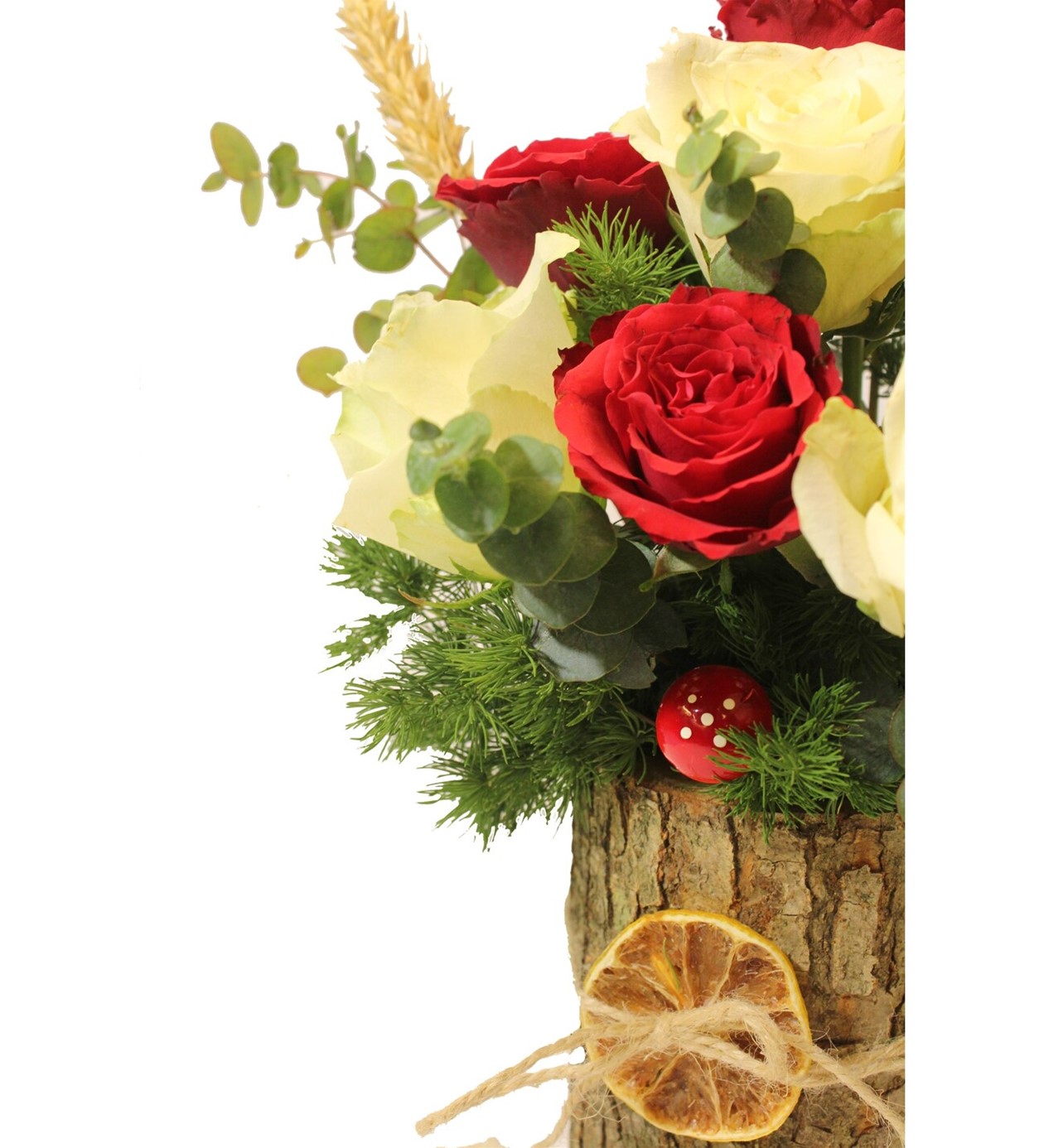 Kurutulmuş Limon Kabuğu, Mantar ve Buğday Başak Süslemiş Olduğumuz Aranjmanımızı Sevdiklerinize Çiçek Hediyesi Olarak Kullanabilirsiniz.
