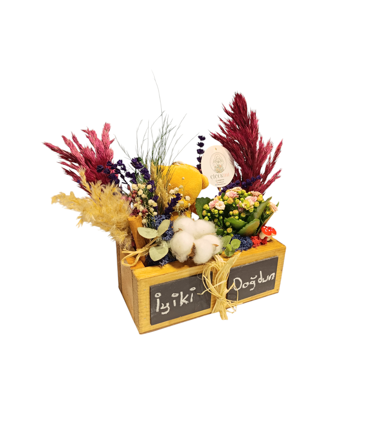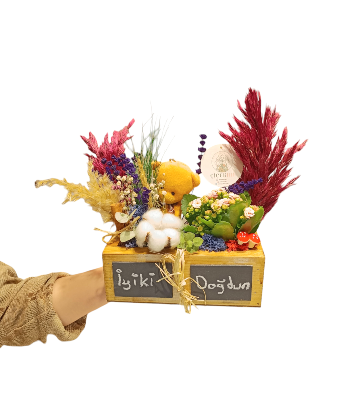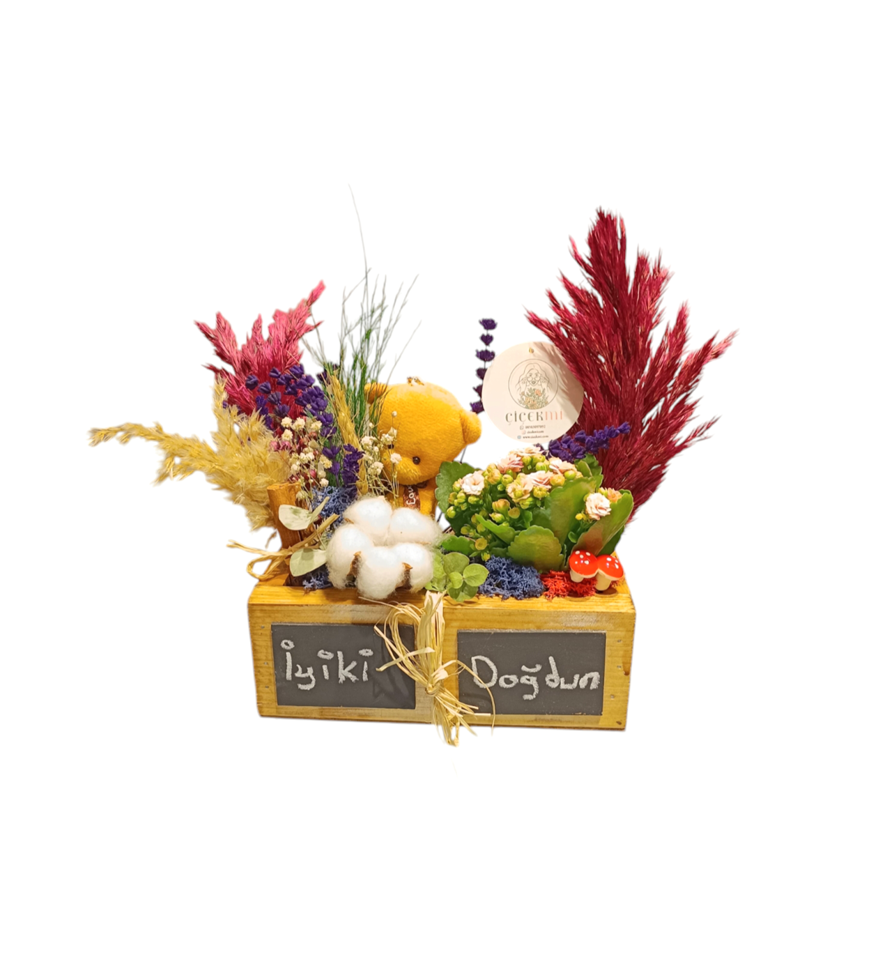 Sevdiklerinize hem şıklık hem de doğanın huzurunu taşıyın. Hemen sipariş verin! Kalanchoe çiçeğiyle mutluluğu, ayıcıkla sıcaklığı, kuru çiçeklerle zarafeti bir arada sunuyoruz!