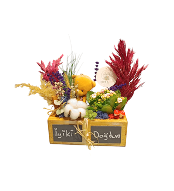 Sevdiklerinize unutulmaz bir hediye vermek ister misiniz? İşte karşınızda, Kişiye özel S-S Serisi Ayıcık kuru çiçek ve Kalanchoe Çiçeği. Bu eşsiz tasarım, hem doğallığı hem de sıcak bir dokunuşu bir araya getiriyor.