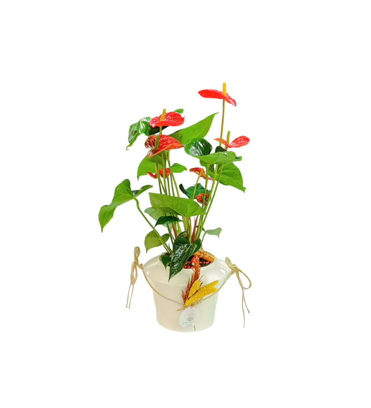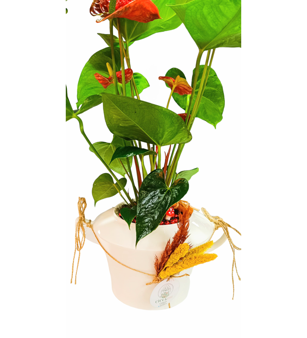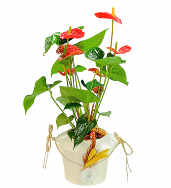 Porselen vazomuzun şıklığı ve antoryum çiçeğimizin güzelliği ile tasarladığımız bitkimizi ofis, açılış, tebrik, hediye, arkadaşa, eşinize hasta ziyareti adına gönül rahatlığı ile gönderebilirsiniz.
