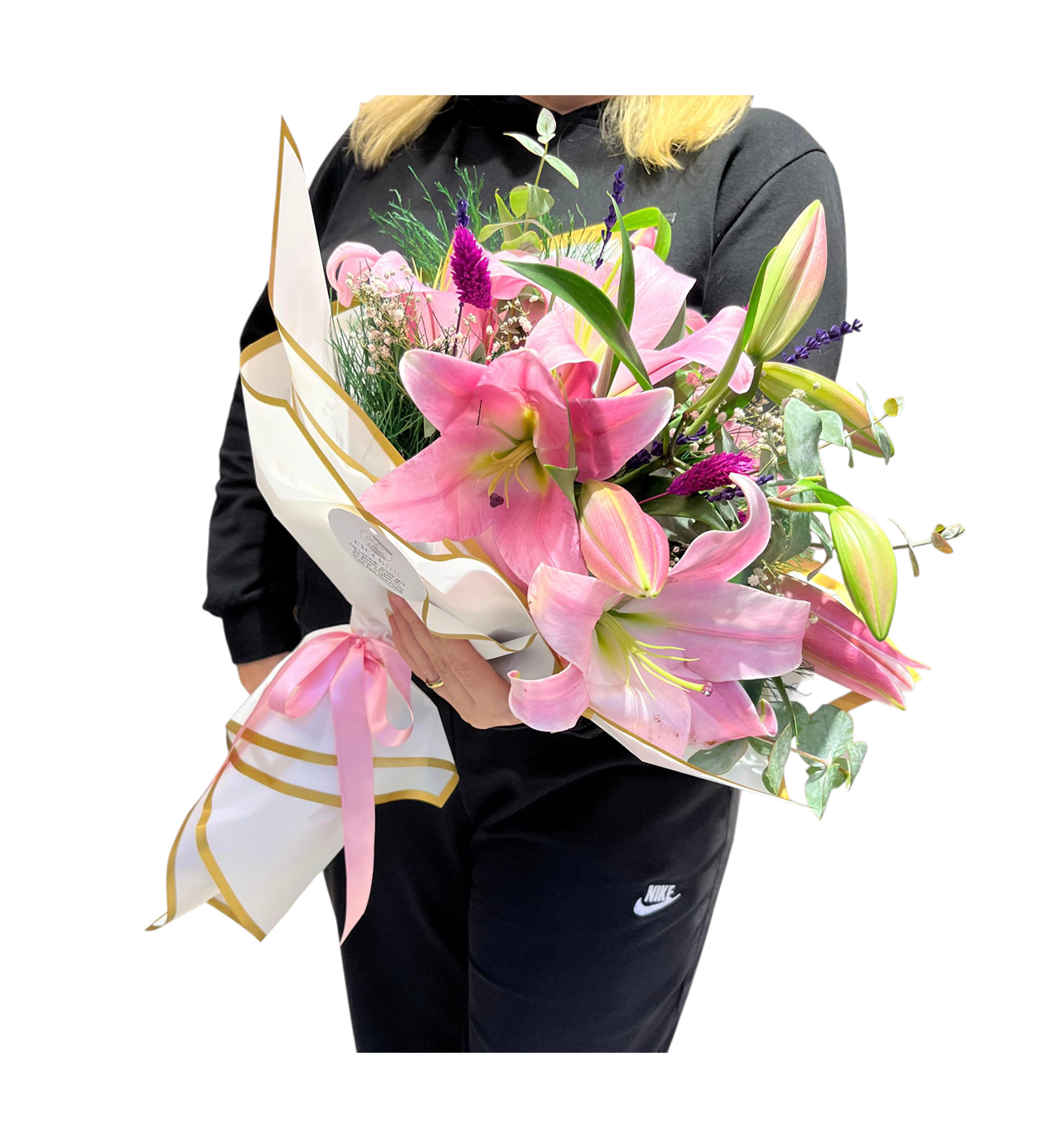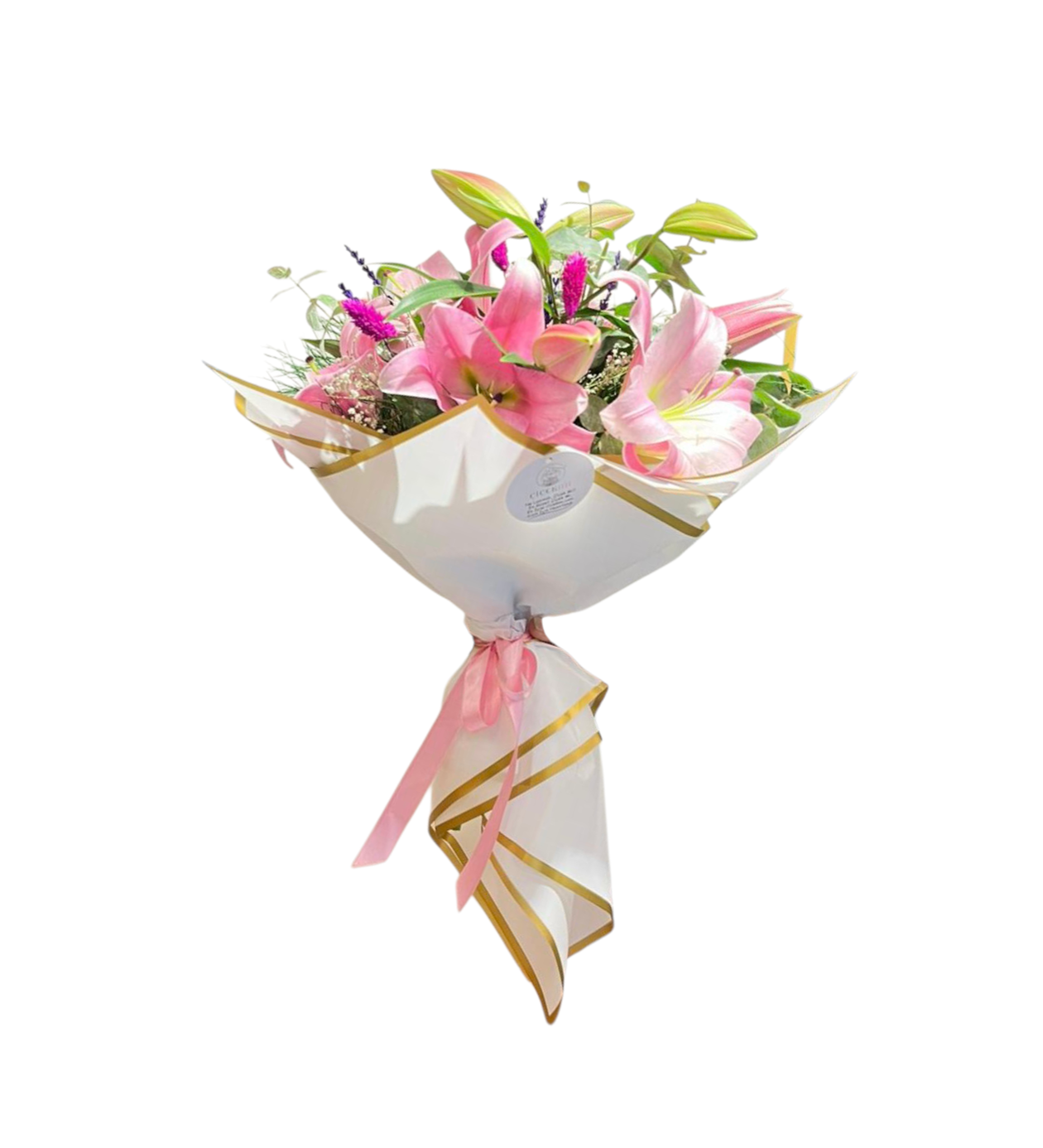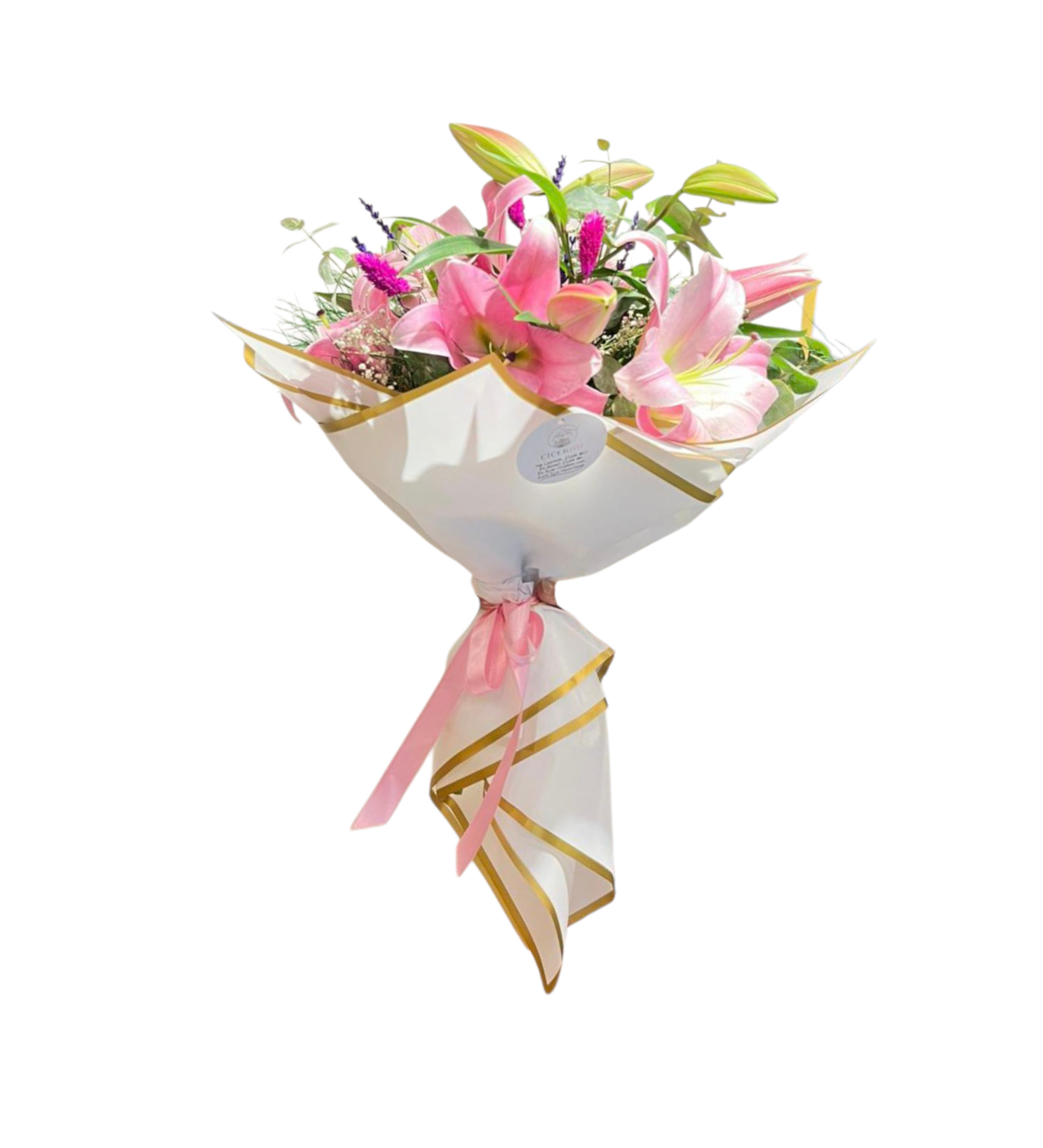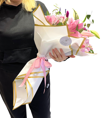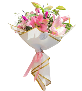 Romantik ve zarif bir hediye mi arıyorsunuz? Pembe Lilyum Buketi, beyaz buket kâğıdıyla şık bir şekilde sarılmış, üzerine okaliptus, lavanta ve kuru çiçeklerle süslenmiş özel bir tasarımdır. Her bir detayı özenle hazırlanmış bu buket, hem klasik hem de modern çizgileriyle her ortama uyum sağlar.