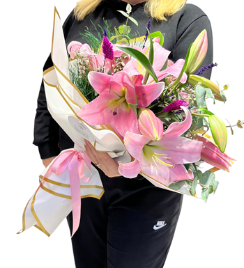 Sevdiğinize zarif bir sürpriz yapmak veya özel günleri güzelleştirmek için 🌷 Pembe Lilyum Buketi tam size göre!
