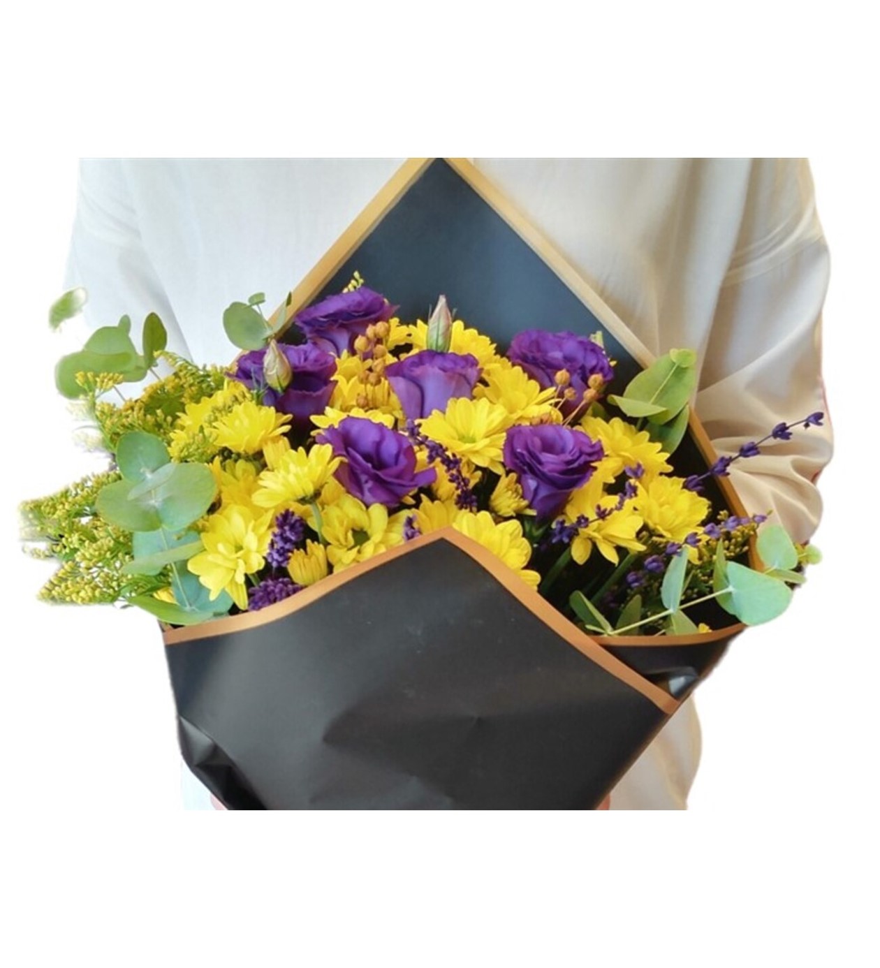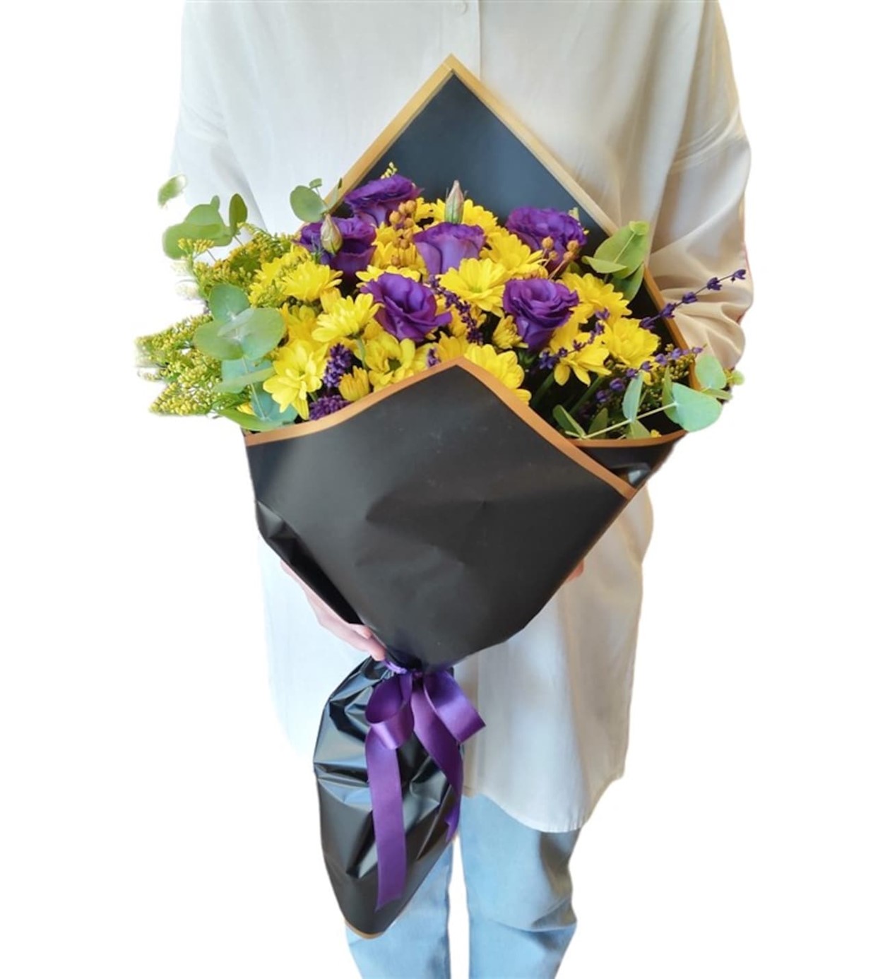 Soft Black Yellow Papatya Lisyantus Buketi