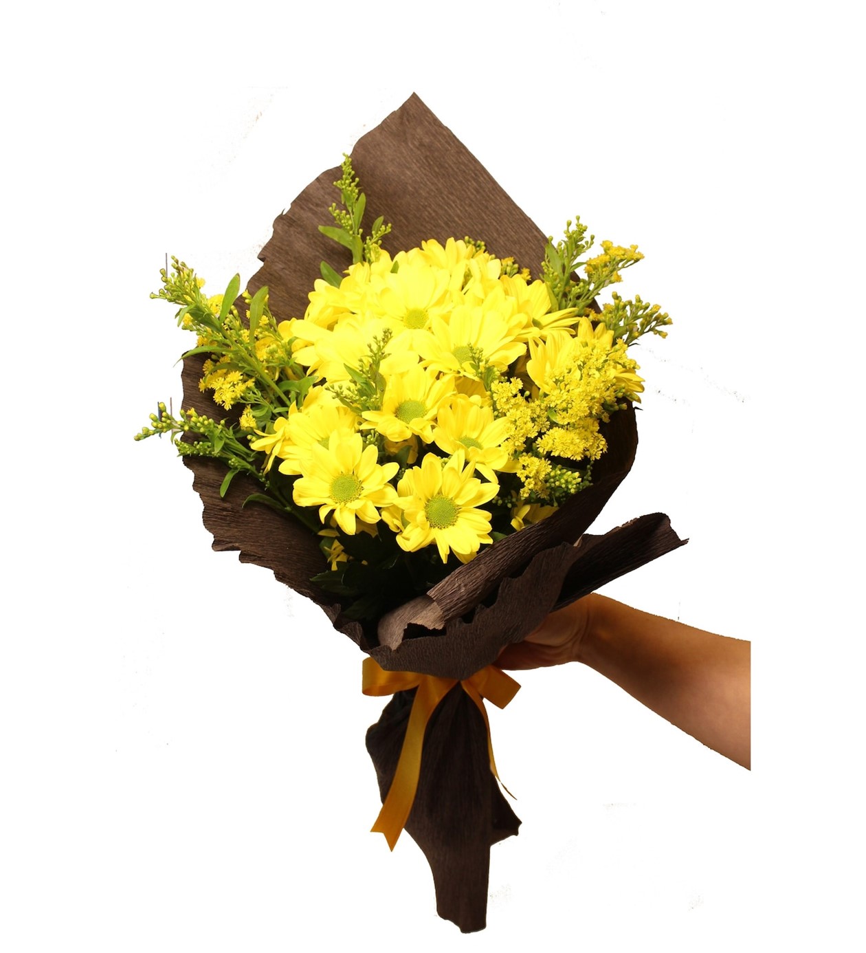 Krep Siyah buket kağıdı ile yaklaşık 40 adet sarı papatyalardan oluşan buketimizi sevdiklerinize hediye edebileceğiniz tarz çiçeklerden biri neden olmasın. Ürün boyutu Minimum 35 cm